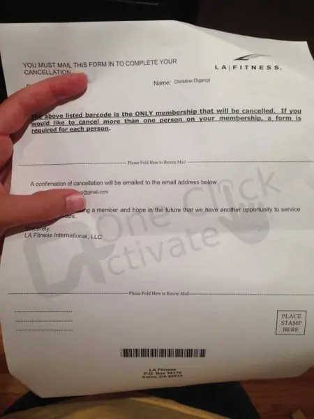 Send your cancellation form using a delivery method that requires a signature, such as certified mail. When the form is received by LA Fitness, if you send it through certified mail, you will be given a receipt for your submission.