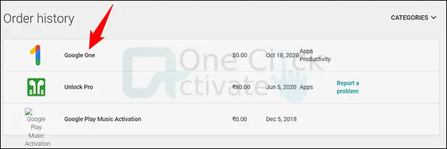 You can review all of your purchases made via Google Play in the “Order History” area of the page that loads after it’s opened.